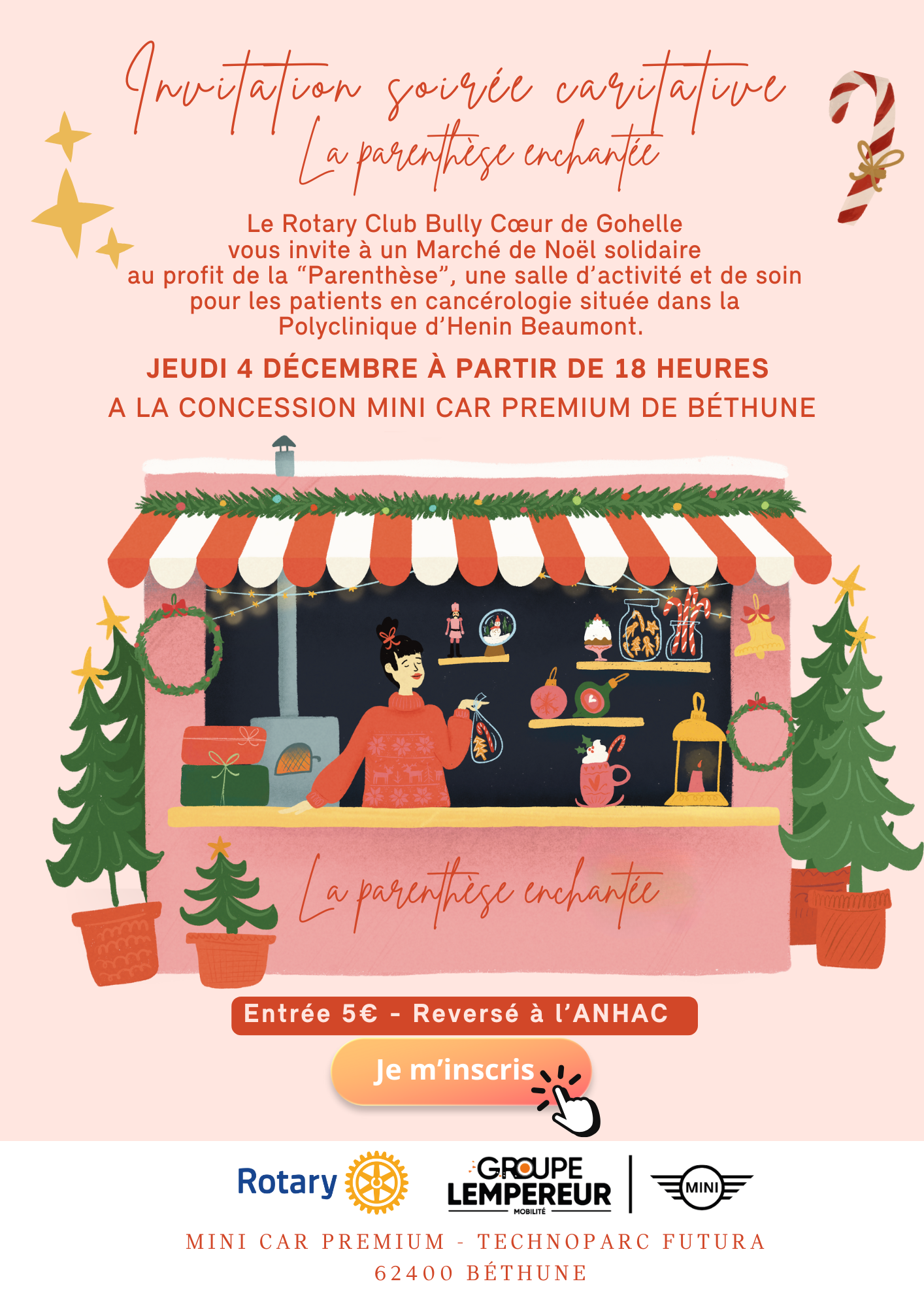 Nous avons le plaisir de vous inviter à notre Soirée de Noël Solidaire, organisée au profit de la salle “Parenthèse” de la Polyclinique d’Hénin-Beaumont.