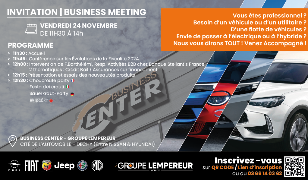 BUSINESS MEETING - CHOUCROUTE PARTYBUSINESS CENTER - GROUPE LEMPEREURCITÉ DE L'AUTOMOBILERUE BARACK OBAMA - DECHYVENDREDI 24 NOVEMBRE 202311H30 - 14H